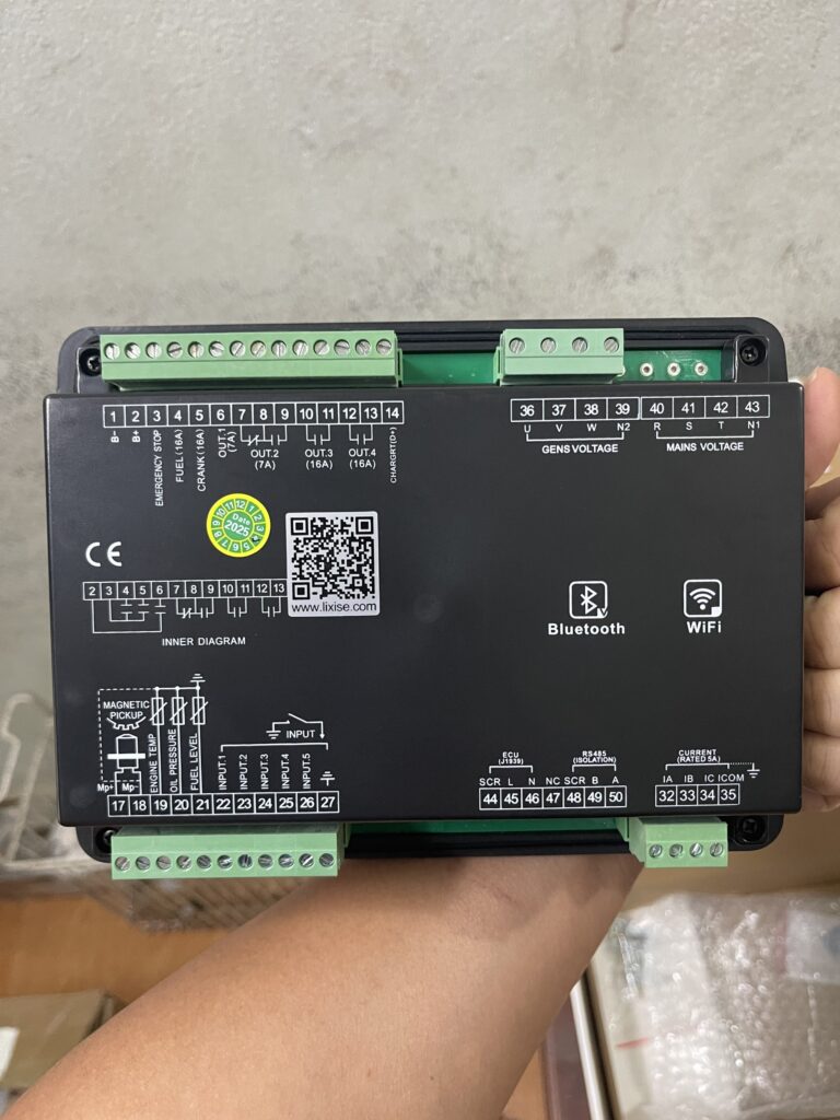Khả năng bảo vệ: Tự động theo dõi các thông số như áp suất dầu, nhiệt độ nước, điện áp pin, tốc độ động cơ ($RPM$), và tần số ($Hz$).