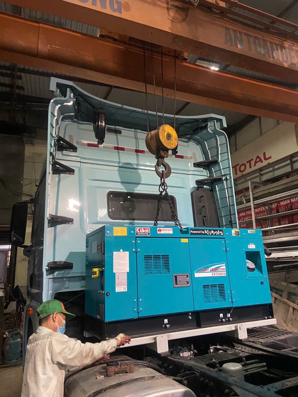 1. Máy phát điện gác sau cabin: Thiết bị độc lập, được cố định lắp đặt phía sau cabin của container. Loại này dễ dàng tháo lắp và chuyển đổi giữa các đầu kéo container khi cần thay đổi trong đội xe.